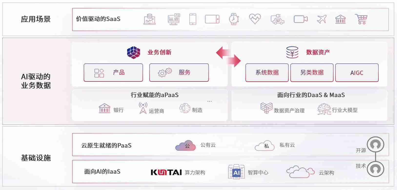 数字时代,,,围绕企业数字化转型的关键要素,,,,NO钱包数码开创性的提出数云融合战略和技术体系框架,,,,着力在云原生、、数字原生、、、AI原生和信创产业上架构产品和服务能力,,,,为处在不同数字化转型阶段的快消零售、、汽车、、金融、、医疗、、、、政企、、、、教育、、、运营商等行业客户提供泛在的敏捷IT能力和融合的数据驱动能力,,,,构建跨界融合创新的数字业务场景和新业务模式,,助力企业级客户建立面向未来的核心能力和竞争优势,,全面推动社会的数字化、、智能化转型升级。。